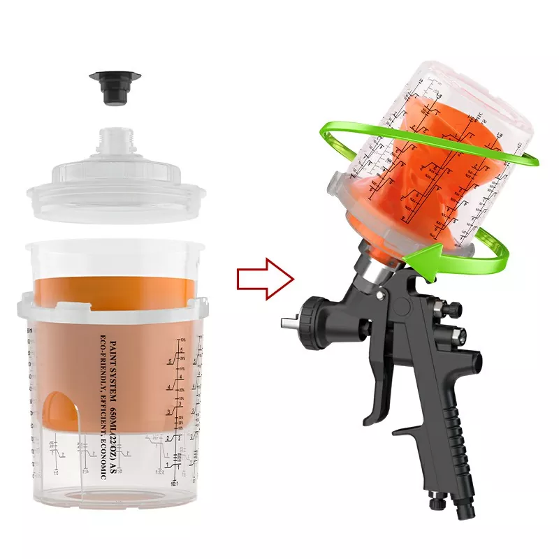 Sistem Cangkir Semprot Sekali Pakai 400ML 3.1 adalah sistem cangkir semprot sekali pakai HVLP yang dirancang dengan cermat dengan kinerja luar biasa dan penerapan luas. Sistem ini dapat digunakan dengan berbagai merek senjata semprot melalui adaptor seri AS3.0 khusus, yang memastikan kompatibilitas dan stabilitas dalam berbagai skenario penyemprotan.