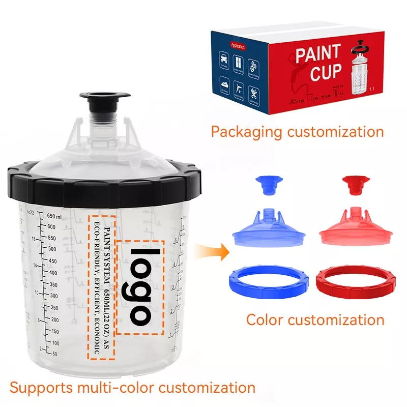 Sistem Piala Cat Sekali Pakai 600ML 1.0 adalah cangkir standar paling serbaguna yang cocok untuk area di mana bahan berukuran 22 fl oz atau kurang disemprotkan. AYSPAT menawarkan berbagai sistem cangkir PPS dengan desain berbeda untuk Anda pilih, dan juga dapat disesuaikan untuk memenuhi kebutuhan Anda:Cangkir luar dapat disesuaikan dengan logo dan skala merek Anda, dan tutupnya dapat disesuaikan dengan warna dan jenis filter. Kami berkomitmen untuk mengembangkan sistem cangkir semprot sekali pakai yang lebih efisien dan nyaman untuk membantu pelukis menyelesaikan pekerjaan pengecatan mereka secara profesional dan efisien.