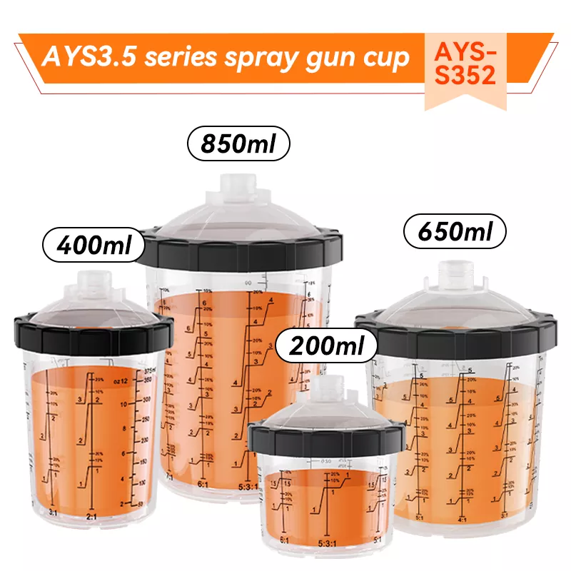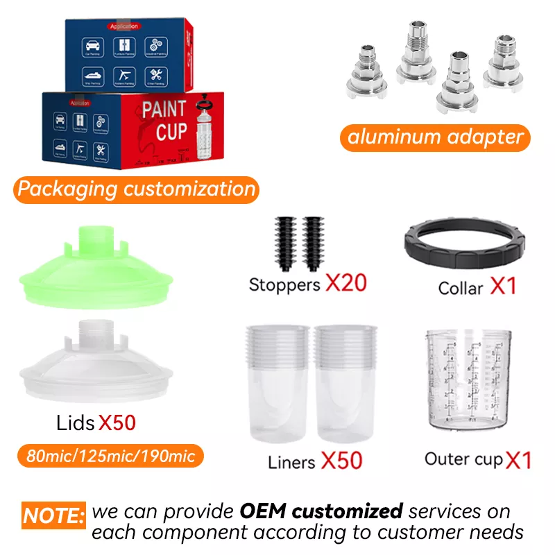 850ML Speedy Paint System 2.0 terutama digunakan dan dilengkapi pada penyemprotan otomotif profesional dan senjata semprot penyemprotan industri. Kami dapat menyediakan 20+ jenis adaptor untuk memenuhi semua merek pistol semprot yang ada di pasaran. Mengenai produknya sendiri, kami dapat menyediakan filter 80, 125, dan 190mic, dan liner serta tutupnya juga dapat melakukan perawatan anti-UV untuk memenuhi penyemprotan dan pengawetan beberapa cat yang sangat istimewa. Setelah pengecatan selesai, cat yang tidak terpakai dapat disimpan dalam sistem cup cat untuk penggunaan selanjutnya. Untuk mencegah cat mengering dan menyumbat filter, kami sarankan untuk menutupnya dengan sumbat sebelum menyimpan sistem cangkir secara terbalik. Terakhir, penggemar lukisan semprot dipersilakan untuk datang dan menanyakan tentang produk kami!