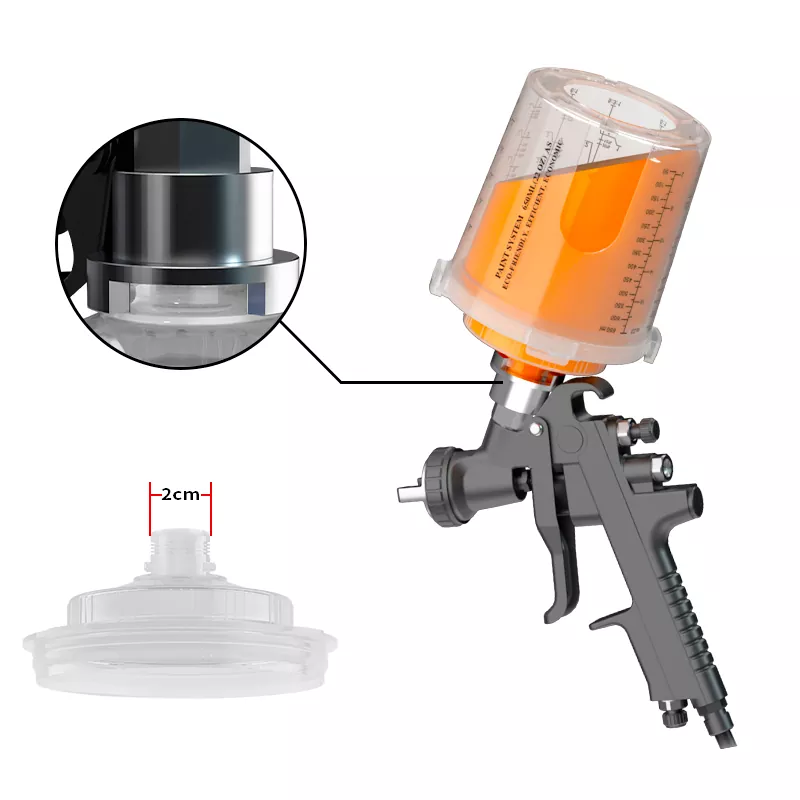 Desain gesper terintegrasi dari semburan cangkir semprot sekali pakai menghubungkan adaptor lebih erat, yang sangat meningkatkan stabilitas hubungan antara cangkir semprotan dan pistol semprot. Pada saat yang sama, diameter semburan cangkir yang diperbesar membuat debit cat lebih cepat dan lebih seragam, yang sangat meningkatkan efek penyemprotan.