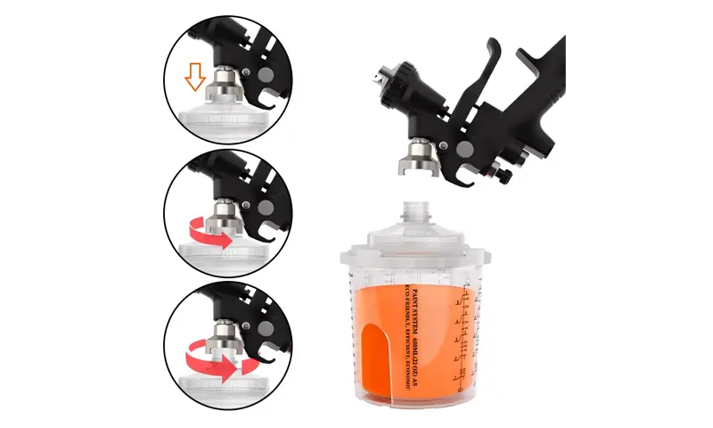 Dapatkan adaptor cangkir cat khusus sekali pakai (adaptor seri AS3.0) Siap menempel pada senapan semprotan
