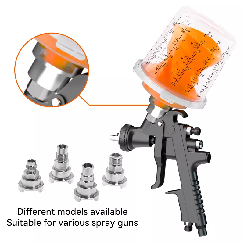 Kami menyediakan adaptor untuk berbagai merek senjata semprot untuk memastikan kompatibilitas dan stabilitas cangkir senapan semprot dengan berbagai merek senjata semprot.