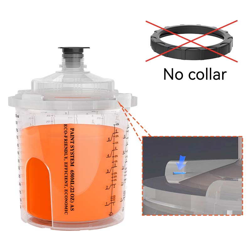 Kerah, yang membentuk koneksi ketat antara cangkir dan tutupnya, telah lama menjadi komponen penting dalam sistem cangkir semprot sekali pakai. Selama sesi lukisan yang sibuk, pelukis sering kehilangan atau merusak kerah, mencegah cangkir semprot sekali pakai berfungsi dengan baik, menciptakan tantangan yang signifikan.