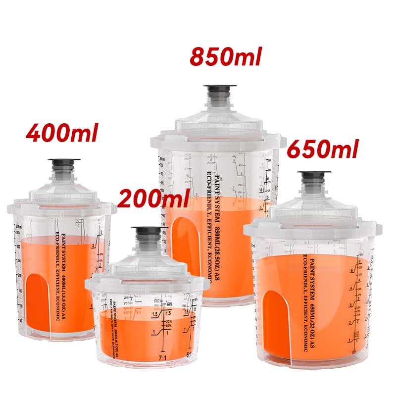 - The Ays3.1cangkir semprot sekali pakaiterbuat dari bahan PP dan PE yang tahan pelarut dan tahan dampak. Ini mendukung berbagai pelapis, termasuk cat lateks, cat berbasis minyak, dan pernis, secara efektif menghilangkan masalah korosi yang biasa dikaitkan dengan gelas semprotan tradisional.